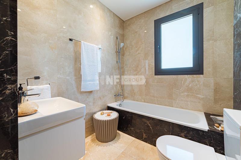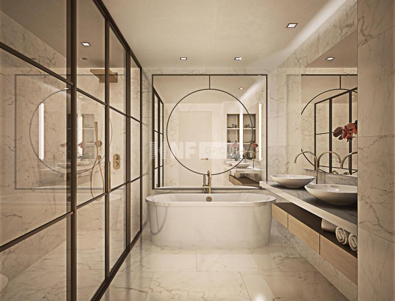 В 3-спальных апартаментах площадью 139 м² установлены высококачественная сантехника, первоклассные кухонные гарнитуры и гардеробные шкафы от известных европейских брендов, термо-алюминиевые оконные рамы, входные двери повышенной безопасности, видеодомофон. Старая цена: €910 000 + НДС, новая цена: €827 000 + НДС!